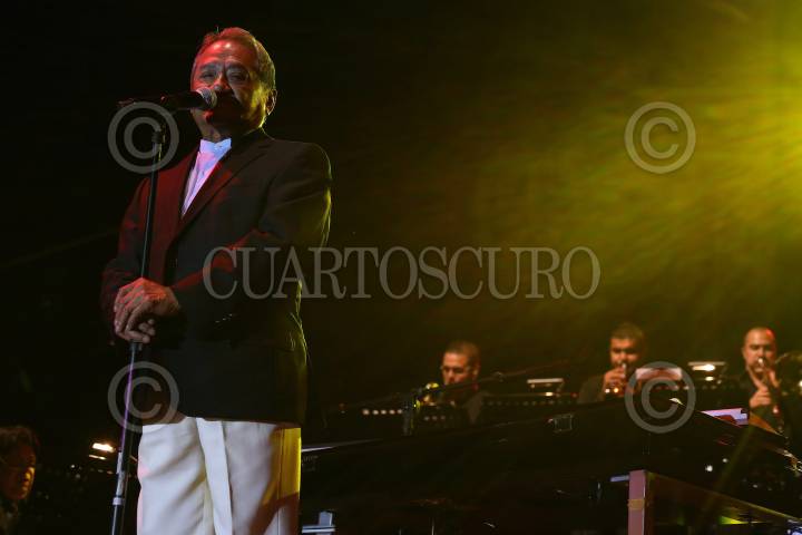 MÉXICO, D.F., 14MAYO2011.- Francisco Céspedes, compositor cubano; participó en dueto con Armando Manzanero esta tarde en un concierto organizado por la delegación Venustiano Carranza en conmemoración del Día de la Madre que se celebró en días pasados. Ésto se realizó en el Velódromo Olímpico Agustín Melgar del complejo Ciudad Deportiva. FOTO: MISAEL VALTIERRA/CUARTOSCURO.COM