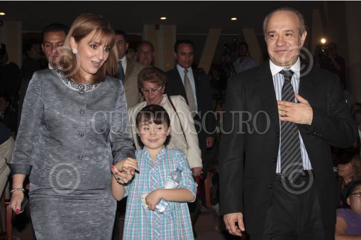 MÉXICO, D.F., 24AGOSTO2011.- Dionisio Pérez-Jácome, secretario de Comunicaciones y Trasportes, y Gloria Guevara Manzo, participaron en la ceremonia de cancelación del timbre postal alusivo 2011, Año del Turismo en México, en el Palacio Postal de Correos de México. FOTO: MOISÉS PABLO/CUARTOSCURO.COM