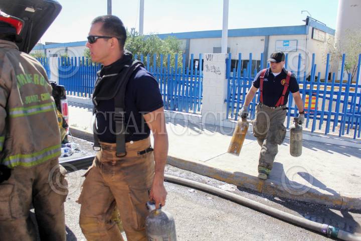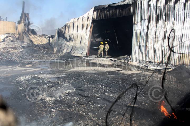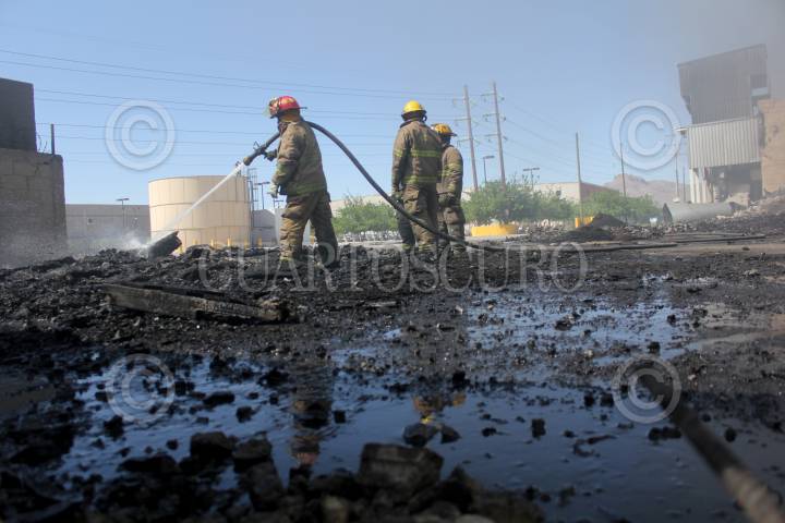 CIUDAD JUÁREZ, CHIHUAHUA, 03ABRIL2018.- Un incendio consumió por la noche gran parte de la maquiladora BM de México, ubicada en el Parque Industrial Gema II al sur de la ciudad. Además del desalojo del personal, debido a las dimensiones del incendio, varias cuadras de la colonia Andrés Figueroa fueron evacuadas, ante el riesgo de que el fuego se extendiera a las viviendas aledañas. FOTO: NACHO RUIZ /CUARTOSCURO.COM