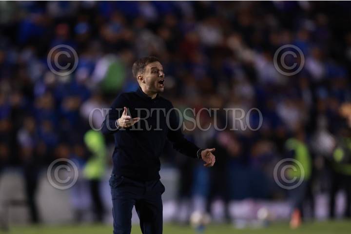 CIUDAD DE MÉXICO, 30NOVIEMBRE2024. El DT Martin Anselmi da indicaciones durante el partido de fútbol Cruz Azul vs Tijuana correspondiente a la vuelta de cuartos de final del Torneo Apertura 2024 de Liga BBVA MX, en el Estadio Ciudad de los Deportes. FOTO: EDGAR NEGRETE LIRA/CUARTOSCURO.COM