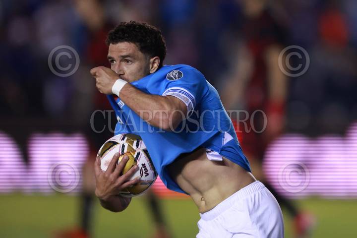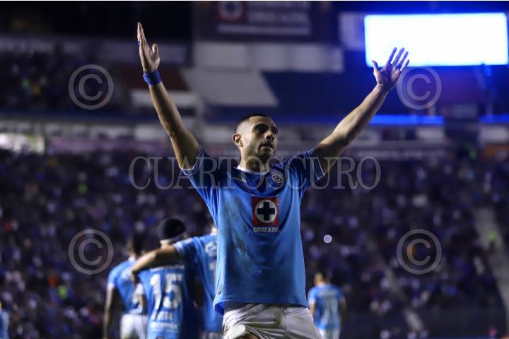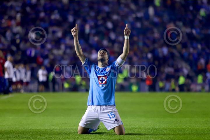 CIUDAD DE MÉXICO, 30NOVIEMBRE2024. El jugador José Rivero celebra su anotación durante el partido de fútbol Cruz Azul vs Tijuana correspondiente a la vuelta de cuartos de final del Torneo Apertura 2024 de Liga BBVA MX, en el Estadio Ciudad de los Deportes. FOTO: EDGAR NEGRETE LIRA/CUARTOSCURO.COM