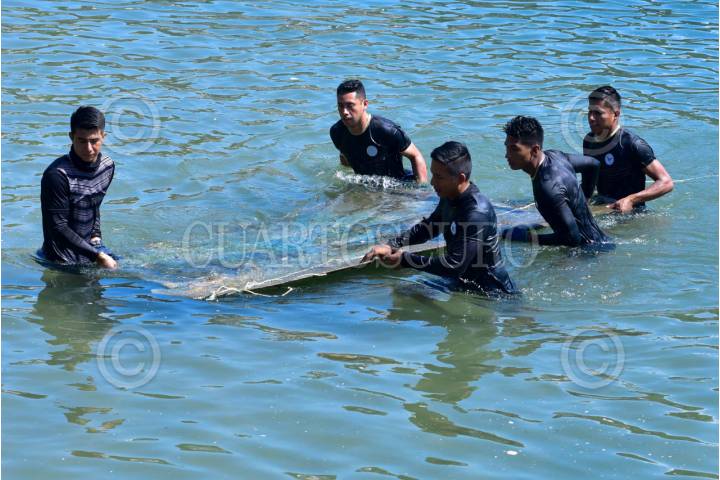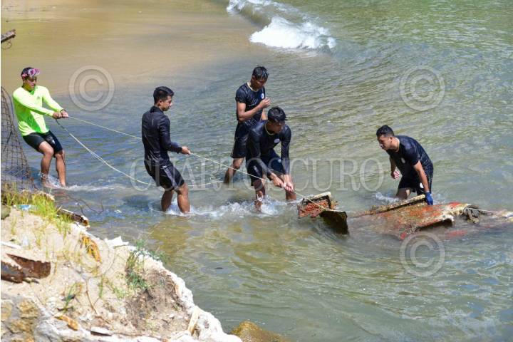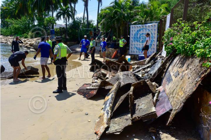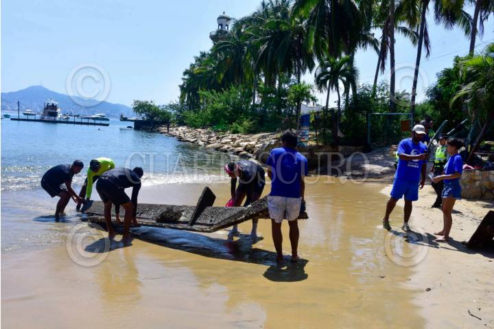 ACAPULCO, GUERRERO, 04AGOSTO2025.- Buzos de la Marina, estudiantes e integrantes de la Asociación Ola del Cambio realizaron una limpieza acuática en la Playa Honda, en donde decenas de embarcaciones se hundieron durante el impacto del huracán Otis en Acapulco. FOTO: CARLOS ALBERTO CARBAJAL/CUARTOSCURO.COM