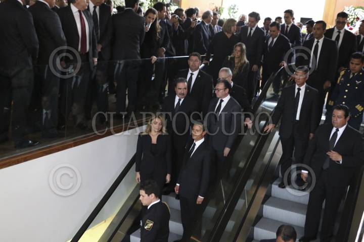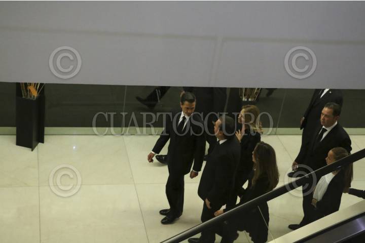 CIUDAD DE MÉXICO, 08AGOSTO2016.- El presidente de México, Enrique Peña Nieto, y su esposa, Angélica Rivera, acudieron a darle el pésame a Emilio Gamboa Patrón, coordinador de los senadores priistas, por la muerte de su esposa María Angélica Miner, quien fue velada en una funeraria de Santa Fe. FOTO: SAÚL LÓPEZ /CUARTOSCURO.COM