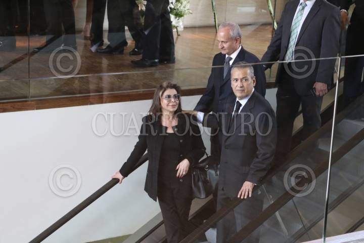 CIUDAD DE MÉXICO, 08AGOSTO2016.- Manlio Fabio Beltrones y su esposa Sylvia Sánchez acudieron a darle el pesame a Emilio Gamboa Patrón, coordinador de los senadores priistas, por la muerte de su esposa María Angélica Miner, quien fue velada en una funeraria de Santa Fe. FOTO: SAÚL LÓPEZ /CUARTOSCURO.COM