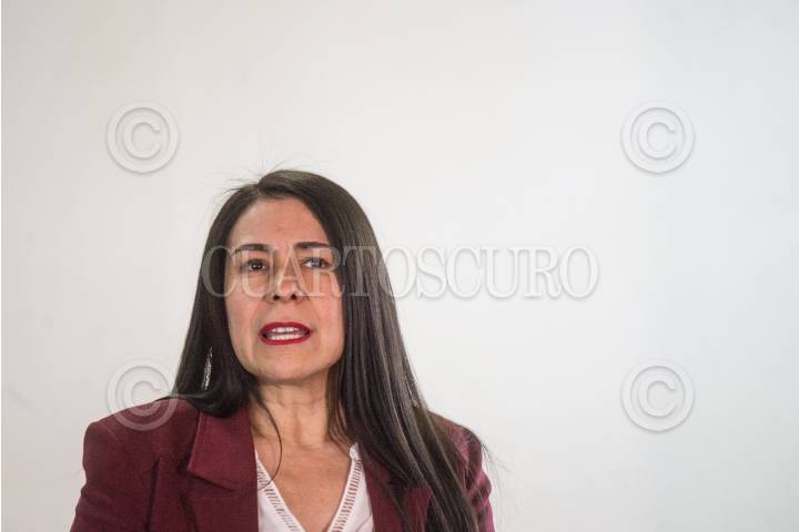 La actriz María Aura, durante conferencia de prensa para anunciar la temporada de presentación de la obra “Casi una mujer perfecta” del 7 al 29 de mayo en “La Teatrería”.