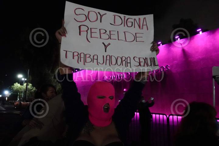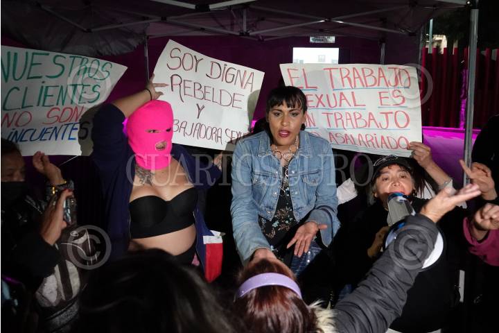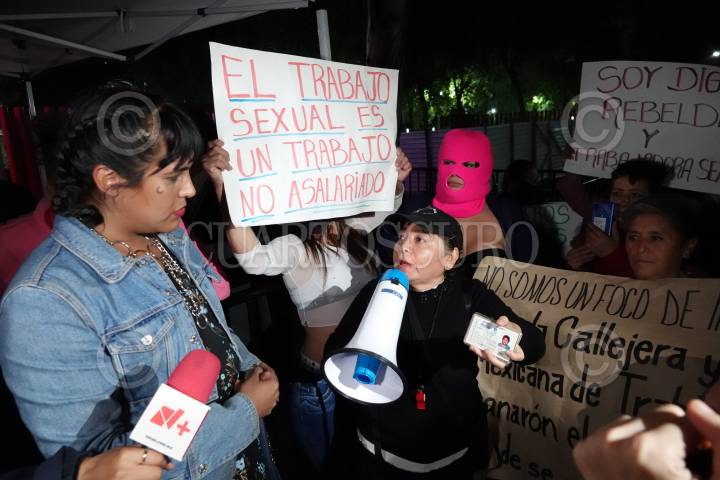 Trabajadoras Sexuales que laboran en la vía pública en la capital y la Red de Trabajo Sexual que pertenecen a Brigada Callejera en Apoyo a la Mujer Elisa Martínez A.C, protestaron afuera de la Cámara de Diputados para expresar su inconformidad y exigir a la diputada María Clemente García que se cambie la iniciativa de una ley que regule su oficio, en donde incluya sus voces porque muchas de ellas no cuentan con un correo para registrarse y puedan asistir a un parlamento abierto en la Cámara Baja