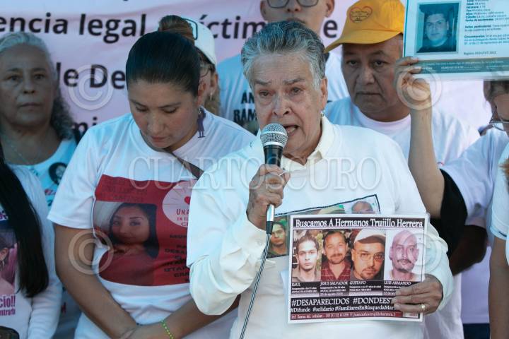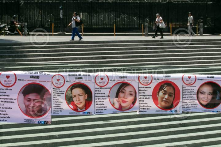 CIUDAD DE MÉXICO, 18ABRIL2024.- María Herrera; quien busca a sus cuatro hijos Raúl, Jesús Salvador, Gustavo y Luis Armando Trujillo Herrera, durante la conferencia de prensa en la cual estuvieron presentes diversos colectivos de personas desaparecidas para anunciar la Jornada Nacional de Búsqueda Humanitaria, que se llevará cabo del 19 al 20 de abril, en donde se movilizarán las diferentes organizaciones que se dedican a la búsqueda de sus seres queridos en todo el país. La conferencia se realizó en la Estela de Luz que señalaron, es la representación de la corrupción de los gobiernos que han demeritado los esfuerzos para que ellos con sus recursos localicen a sus seres queridos. FOTO: MOISÉS ´PABLO/CUARTOSCURO.COM