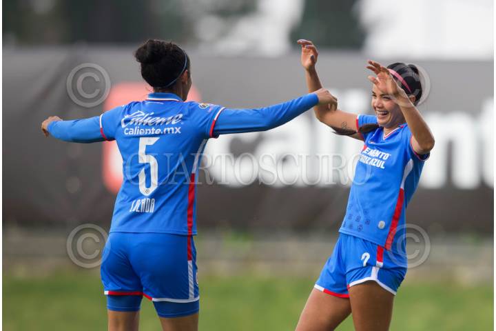 Festejo de la jugadora María Peraza durante el partido de fútbol Cruz Azul vs Puebla correspondiente a la jornada 10 del Torneo Apertura 2022 de Liga BBVA MX Femenil, en instalaciones de La Noria.