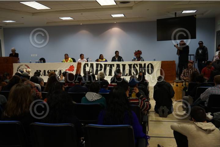 CIUDAD JUÁREZ, CHIHUAHUA, 08FEBRERO2018.- María de Jesús Patricio Martínez "Marichuy" vocera del Consejo Indígena de Gobierno (CGI) sosuvo su primer encuentro con la comunidad fronteriza de Ciudad Juárez. Al evento, realizado en la Universidad Autónoma de Ciudad Juárez, asistieron alrededor de 100 personas, principalmente universitarios. La precandidata independiente y vocera del Consejo Indígena de Gobierno escuchó las problemáticas sociales que denunciaron representantes de la comunidad indígena local y padres de mujeres desaparecidas. FOTO: FAVIA LUCERO /CUARTOSCURO.COM