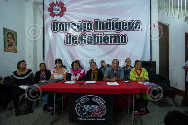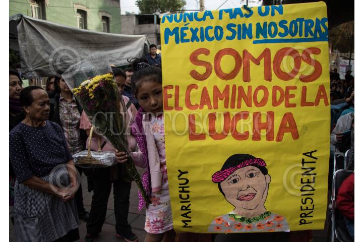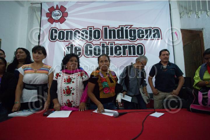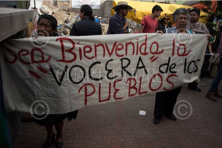 CIUDAD DE MÉXICO, 02MAYO2018.- María de Jesús Patricio Martínez "Marichuy", vocera del Concejo Indígena de Gobierno (CIG) y ex aspirante a candidata independiente a la Presidencia de México; en compañía de concejales del Consejo Nacional Indígena (CNI), realizaron una conferencia de prensa para informar de los siguientes pasos a seguir después de no haber conseguido las firmas y la candidatura independiente. Entre otras cosas, mencionaron que continuaran con el recorrido con los pueblos indígenas en resistencia e informaron que no apoyaran ni participaran con ningún candidato a la presidencia de la República. FOTO: ADOLFO VLADIMIR /CUARTOSCURO.COM