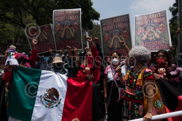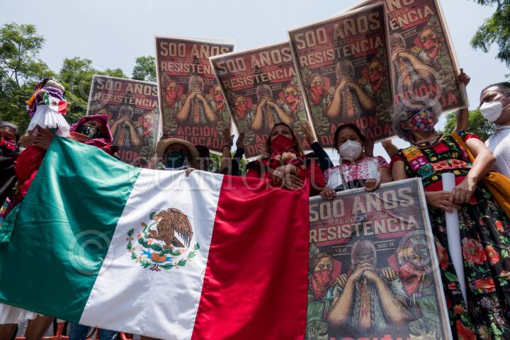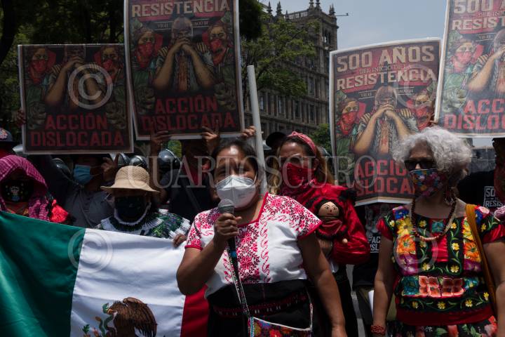 Marichuy durante la conferencia de prensa con motivo de los 500 años de resistencia indígena.