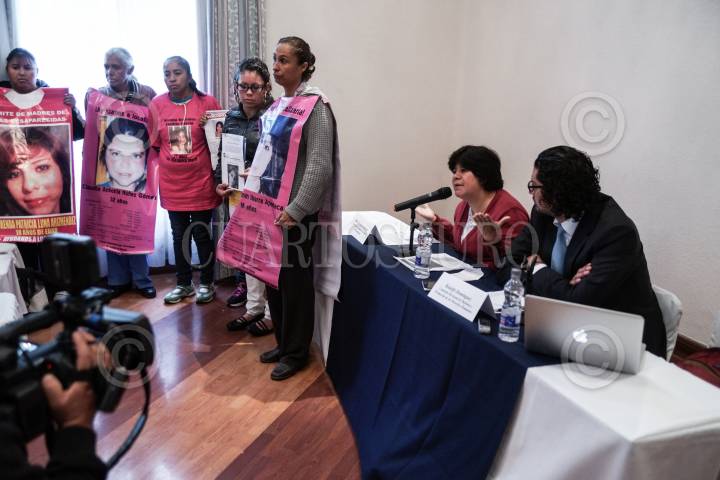 MÉXICO, D.F., 13JUNIO2013.- La violencia en contra de las mujeres ha ido en aumento exponencial en los últimos diez años en distintas ciudades del Estado de México como; Nezahualcoyotl y Toluca . Rodolfo Domínguez, miembro de la comisión mexicana de defensa y promoción de los derechos humanos y María de la luz Estrada, miembro del observatorio ciudadano nacional del feminicidio, convocaron al público y a los medios de comunicación a la conferencia: Alerta de Género en el Estado de México: Demora y consecuencias., misma en la que asistieron madres con pancartas con imágenes de sus jóvenes e hijas desaparecidas en Cuidad Juárez. FOTO: ALEJANDRO NEYRA /CUARTOSCURO.COM