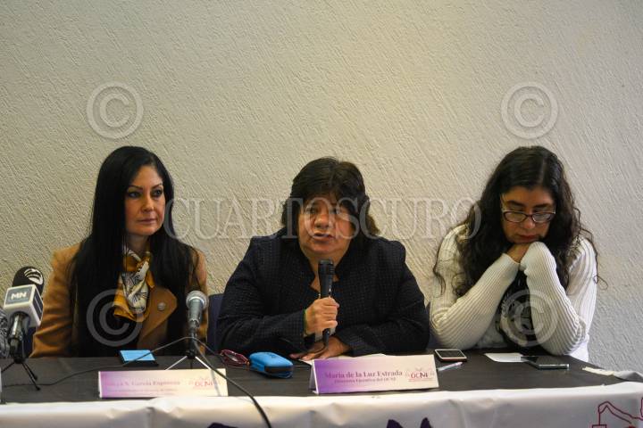 María de la Luz Estrada Directora Ejecutiva bedel Observatorio Ciudadano Nacional del Feminicidio, durante la conferencia con Irinea Buendía mamá de Mariana Lima víctima de feminicidio.