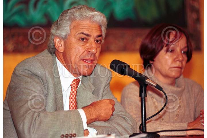 Miguel Harquín y María del Carmen Díaz, ofrecieron una rueda de prensa, en el salón Manuel Avila Camacho, para dar detalles de la gira del presidente Vicente Fox por Europa y Estados Unidos. FOTO: Victoria Valtierra/CUARTOSCURO.COM