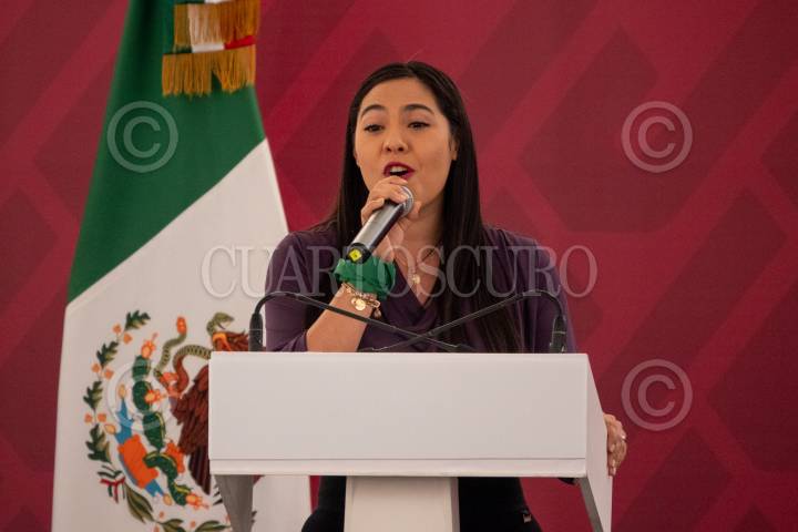 Indira Vizcaíno durante el Encuentro de Mujeres por la Transformación en el Monumento a la Revolución.