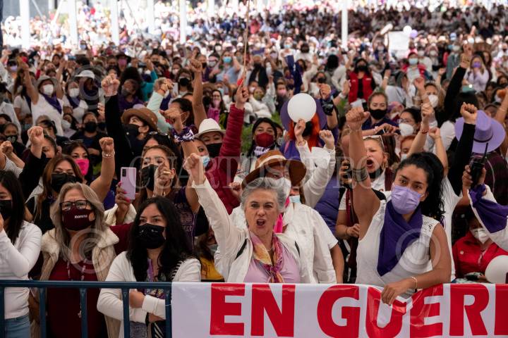 Cientos de mujeres se dieron cita en el monumento a la Revolución para participar en el Encuentro Nacional de Mujeres, encabezado por la jefa de gobierno Claudia Sheinbaum.