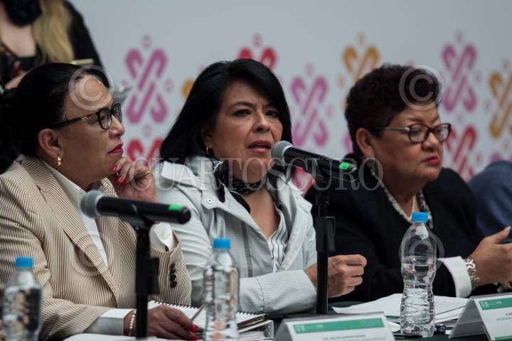 CIUDAD DE MÉXICO, 12FEBRERO2019.- Rosa Icela Rodríguez, secretaria de gobierno capitalina, María del Rocío García Pérez, directora general del Sistema Nacional para el Desarrollo Integral de la Familia, y Ernestina Godoy, procurada general de justicia de la ciudad, durante la primer sesión del Sistema de Protección Integral de Niñas, Niños y Adolescentes de la Ciudad de México (SIPINNA). Dicho organismo tiene como obligación el garantizar la seguridad y resguardo de los infantes y adolescentes residentes de la capital. FOTO: GALO CAÑAS /CUARTOSCURO.COM