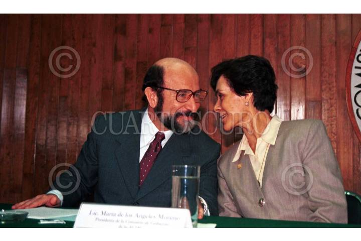 José Luis de la Barreda, presidente de la Comisión Nacional de Derechos Humanos es acompañado por María de los Angeles Moreno líder del PRI en la Asamblea Legislativa, durante el último informe de actividades de la Comisión a cargo de De la Barreda. FOTO: Susana Navarrete/CUARTOSCURO.COM