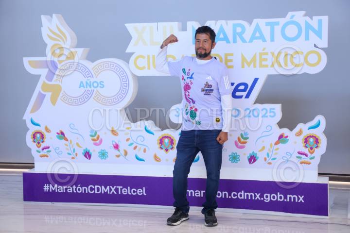 CIUDAD DE MÉXICO, 27AGOSTO2025.- Corredoras y corredores acudieron a recibir su kit para participar en el XLII Maratón de la Ciudad de México Telcel, el cual también conmemora los 700 años de la fundación de México Tenochtitlán. Los orgullosos corredores mostraban su numero y muchos de ellos esperan mejorar sus marcas personales. La ruta de este año será del Estadio Olímpico Universitario y culminará en el Zócalo. FOTO: MOISÉS PABLO/CUARTOSCURO.COM