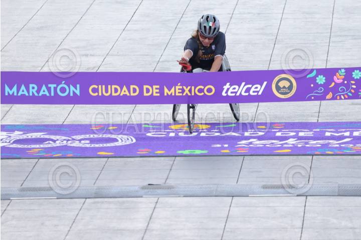 CIUDAD DE MÉXICO, 31AGOSTO2025.- Brenda Osnaya Álvarez ganó en la categoría silla de ruedas femenil del Maratón de la Ciudad de México 2025. La mexicana detuvo el cronometro en 1:38:51. FOTO: MOISÉS PABLO/CUARTOSCURO.COM