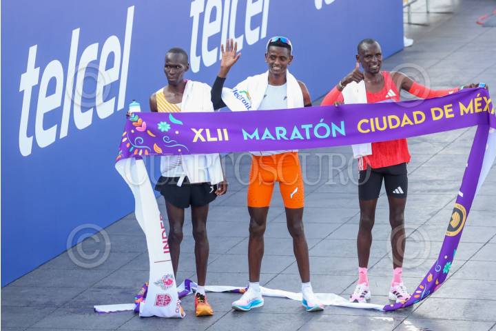 CIUDAD DE MÉXICO, 31AGOSTO2025.- Benard Kipkorir (2:11:26); Radu Abate Deme (2:11:16); y Edwin Kiprop Kiptoo (2:13:06), fueron los ganadores del Maratón de la Ciudad de México 2025. FOTO: MOISÉS PABLO/CUARTOSCURO.COM