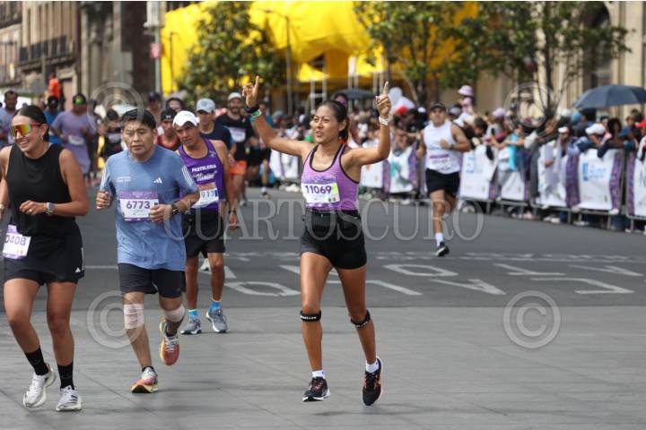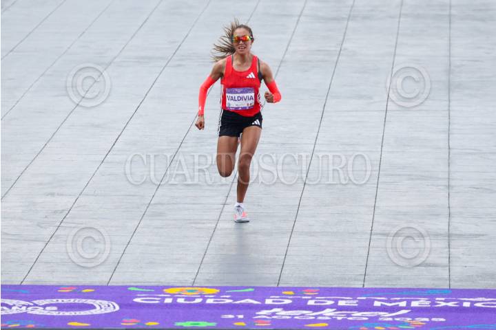 CIUDAD DE MÉXICO, 31AGOSTO2025.- La corredora peruanaThalía Lizaida Margariño Valdivia obtuvo el segundo lugar en la rama femenil el Maratón de la Ciudad de México 2025. La corredora latinoamericana tuvo un tiempo de 02:32:27 al cruzar la meta en el Zócalo. FOTO: MOISÉS PABLO/CUARTOSCURO.COM