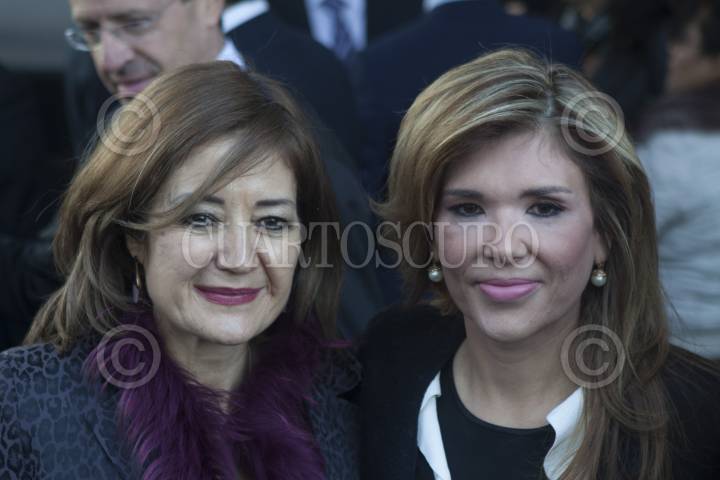 MÉXICO, D.F. 10FEBRERO2015.- Marcela Colosio Murrieta, hermanda de Luis Donaldo Colosio y la precandidata a la gubernatura de Sonora Claudia Pavlovich al finalizar la ceremonia del 65 aniversario del natalicio de Donaldo Colosio, en la explanada del CEN del PRI. FOTO: MOISÉS PABLO /CUARTOSCURO.COM