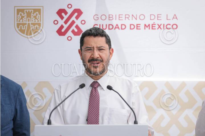 Martí Batres Guadarrama durante la conferencia de prensa en que se dieron detalles sobre el protocolo de seguridad para la marcha del orgullo LGBTTTIQPA+ 2023.