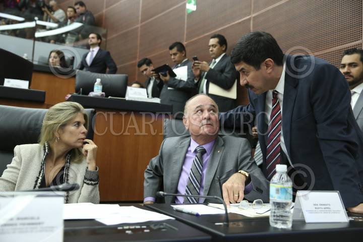 CIUDAD DE MÉXICO, 09MAYO2016.- Los senadores Pablo Escudero, Armando Ríos Piter y Marcela Torres Peimbert, integrantes de la Comisión Anticorrupción se reunieron en la Cámara de Senadores. FOTO: CUARTOSCURO.COM