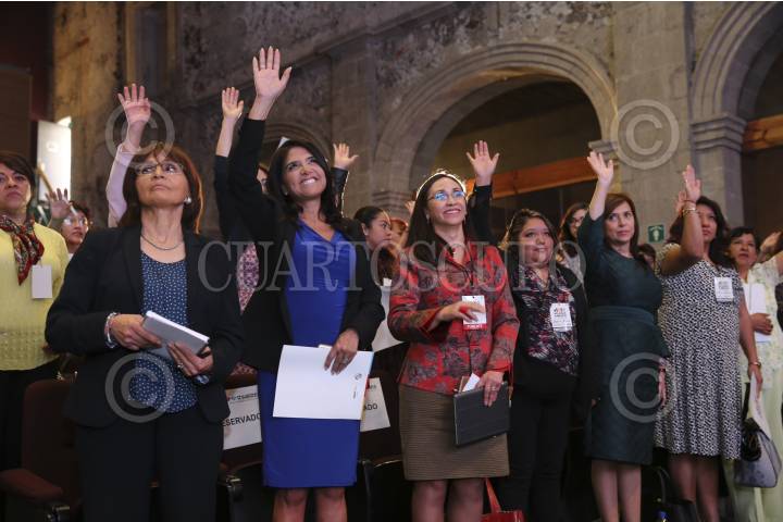 MÉXICO, D.F., 19MARZO2015.- Las senadoras Alejandra Barrales y Cristina Díaz encabezaron el evento +1000 Mujeres x México en la Antigua Escuela de Medicina. FOTO: MOISÉS PABLO /CUARTOSCURO.COM