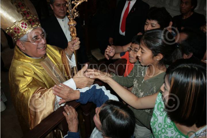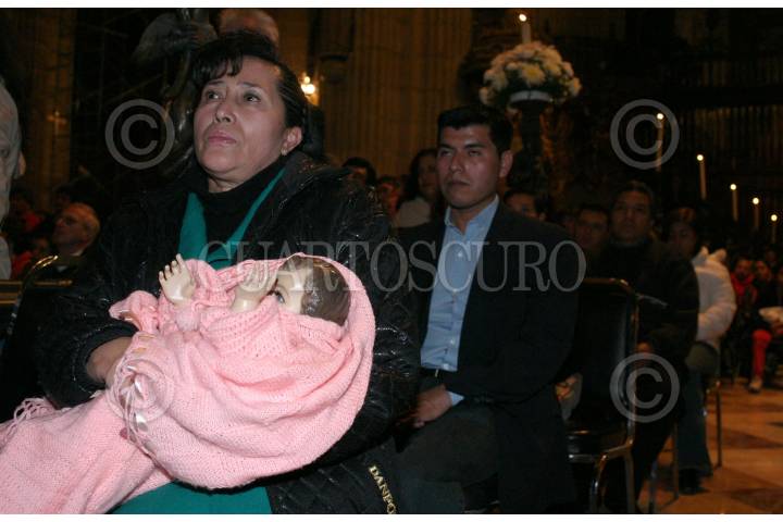 MEXICO, D.F., 24DICIEMBRE2005.- El obizpo Marcelino Hernández, ofico la misa de la navidad en la Catedral Metropolitana. En la imagen feligreses acudieron con sus Niños Dios. FOTO: Moisés Pablo/CUARTOSCURO.COM