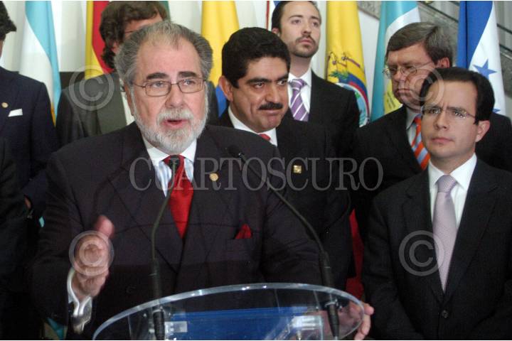 MÉXICO, D.F., 26ENERO2007.- Marcelino Millares, Vicepresidente de la Organización Democrata Cristiana de América, ofreció una conferencia de prensa en la sede del PAN para hablar de la próxima elección en donde se elegirá a un nuevo presidente de dicha organización. FOTO: MOSÉS PABLO/CUARTOSCURO.COM