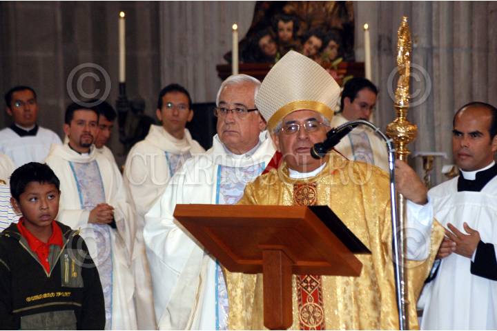 MÉXICO D.F 31MARZO2007.-El arzobispo Marcelino Rodríguez, llevo acabo la misa de la mega misón 2007, en la Basílica de Guadalupe. FOTO: GUILLERMO PEREA/CUARTOSCURO.COM
