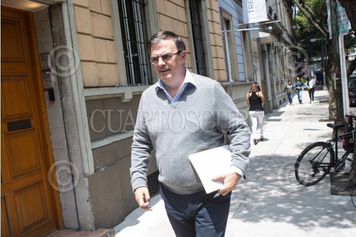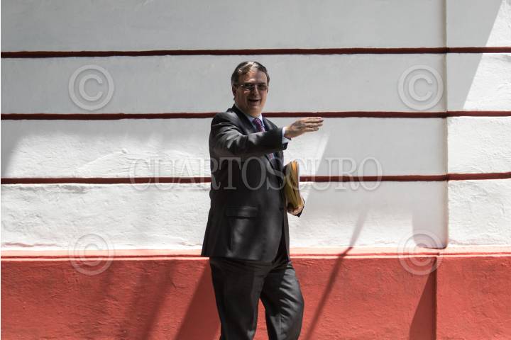 CIUDAD DE MÉXICO, 25JULIO2018.- Marcelo Ebrard Casaubón, próximo secretario de Relaciones Exteriores, a su llegada a la casa de campaña del gobierno de transición ubicada en la calle de Chihuahua 216 en la colonia Roma. FOTO: MISAEL VALTIERRA / CUARTOSCURO.COM