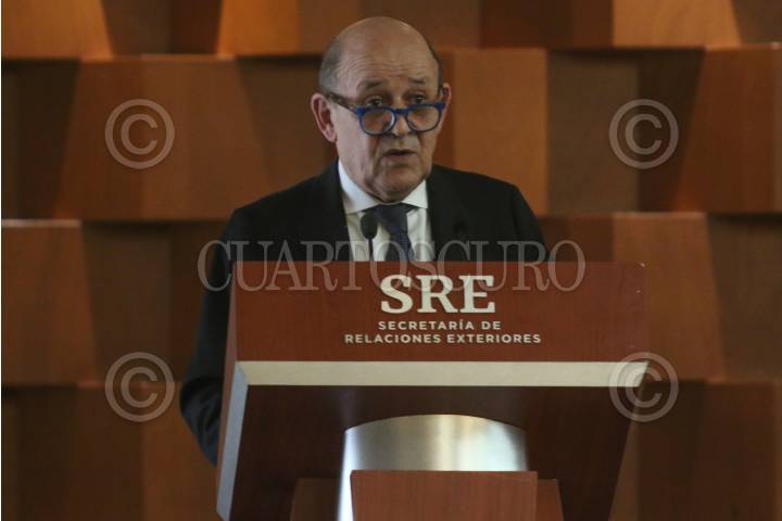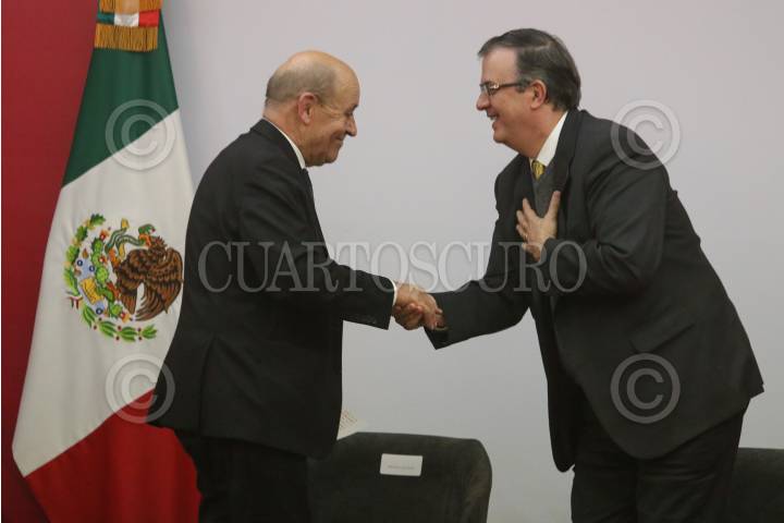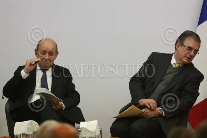CIUDAD DE MÉXICO, 19DICIEMBRE2019.- Jean-Yves Le Drian, Ministro de Asuntos Exteriores de Francia, y Marcelo Ebrard Casaubón, Secretario de Relaciones Exteriores, encabezaron el convesatorio "Diálogo y cooperación entre México y Francia para Multilaterismo Eficaz", en la sede de la SRE. FOTO: ROGELIO MORALES /CUARTOSCURO.COM