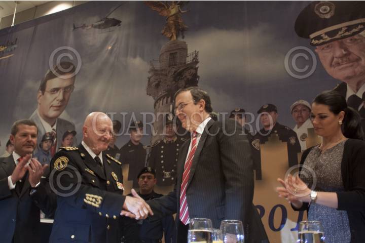 MÉXICO, D.F., 16NOVIEMBRE2012.- Policías festejaron su día en un desayuno encabezado por el Jefe de Gobierno Marcelo Ebrard y el secretario de Seguridad Pública Manuel Mondragón, en el Centro Banamex. FOTO: MOISÉS PABLO /CUARTOSCURO.COM