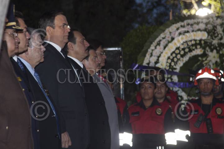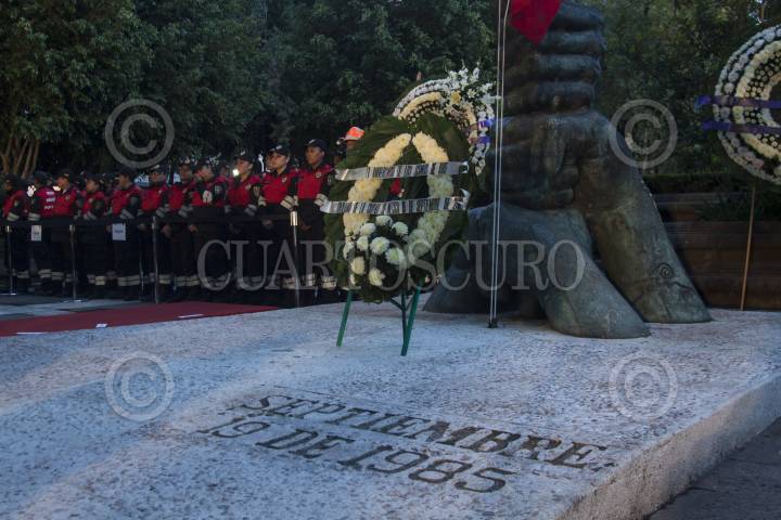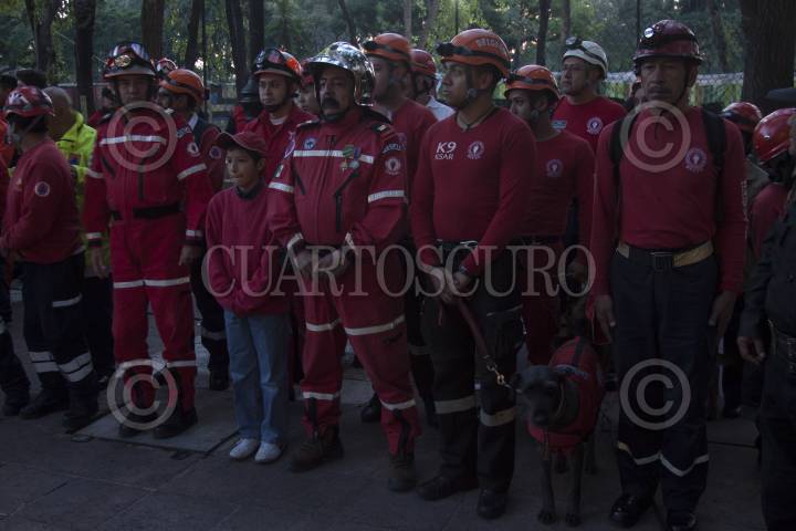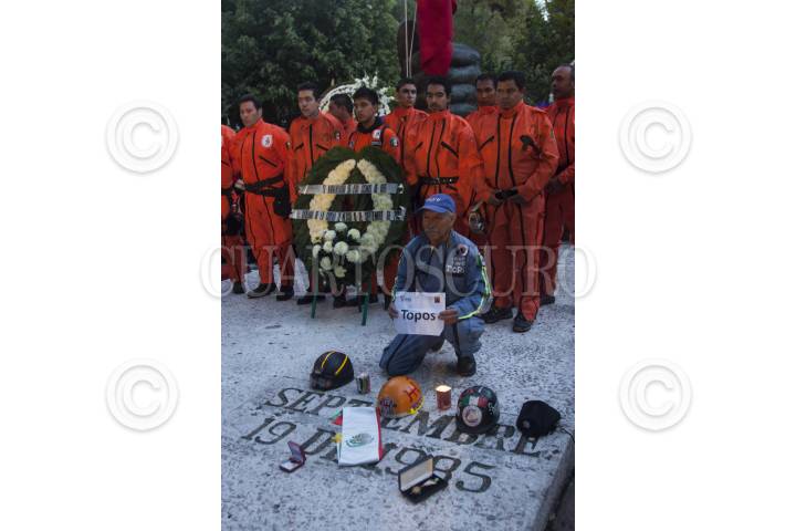MÉXICO, D.F., 19SEPTIEMBRE2010.- Elementos de protección civil, bomberos y policías durante el izamiento de bandera en honor a los caídos en los sismos de 1985 en el asta de Plaza de la Solidaridad. FOTO: RODOLFO ANGULO /CUARTOSCURO.COM