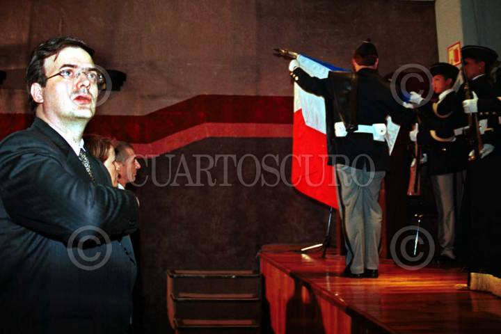 El secretario de Seguridad Pública Marcelo Ebrard, en la ceremonia realizada en la explanada de la Glorieta de Insurgentes, donde participaron elementos de la policia francesa. FOTO: Susana Navarrete/CUARTOSCURO.COM