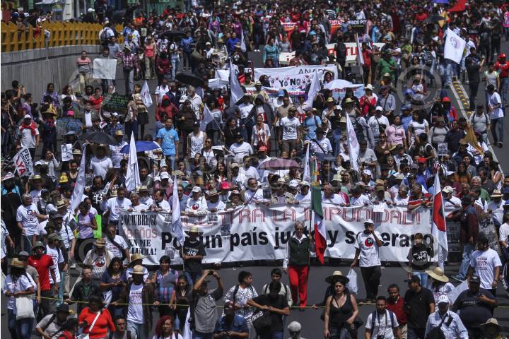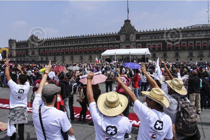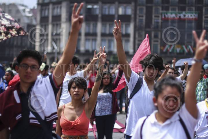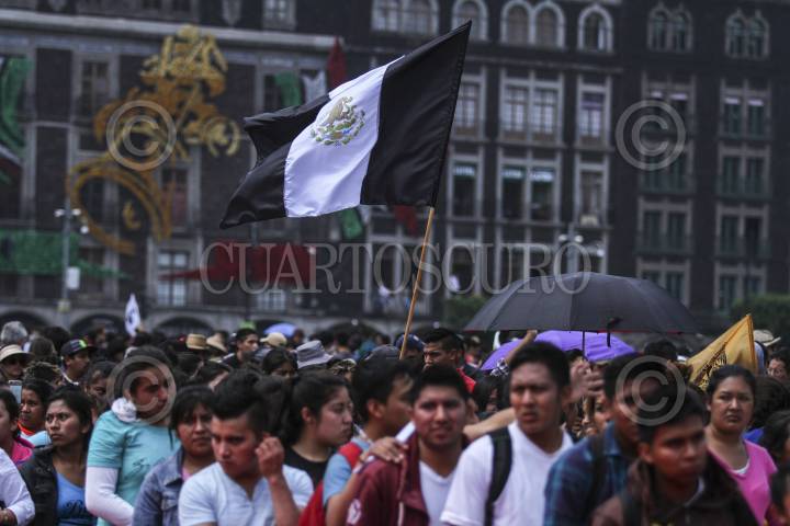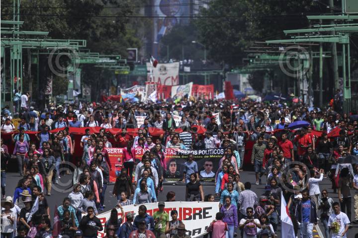 CIUDAD DE MÉXICO, 02OCTUBRE2016.- Cientos de estudiantes, maestros, organizaciones campesinas, sociales y políticas, marcharon de la Plaza de las Tres Culturas en Tlatelolco al Zócalo en memoria de la masacre de 1968. En la plancha capitalina los líderes del Comité del 68, recordaron los hechos y exigieron justicia ante el crimen de Estado que permanece impune, además de exigir la presentación con vida de todos los desaparecidos en el país. FOTO: ADOLFO VLADIMIR /CUARTOSCURO.COM