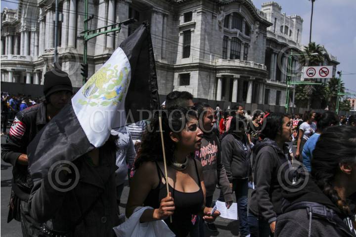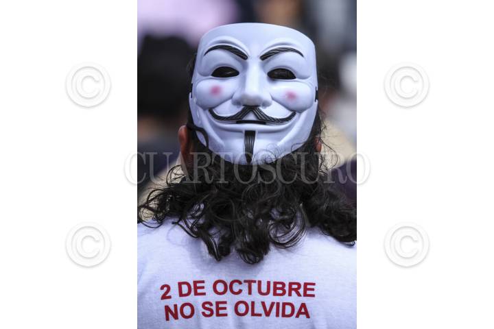 CIUDAD DE MÉXICO, 02OCTUBRE2017.- Estudiantes de la UNAM, IPN, UAM, UACM, Normales Rurales, organizaciones sociales y campesinas, colectivos anarquistas, feministas, Comité 68 y padres de los 43 estudiantes desaparecidos de Ayotzinapa, marcharon de la Plaza de las Tres Culturas en Tlatelolco al zócalo, en conmemoración al cumplirse 49 años de la matanza estudiantil del 02 de octubre. FOTO: ADOLFO VLADIMIR /CUARTOSCURO.COM