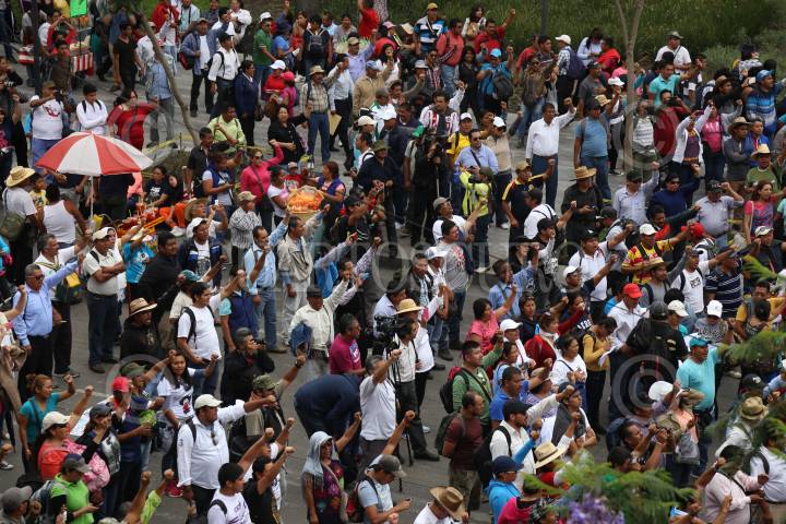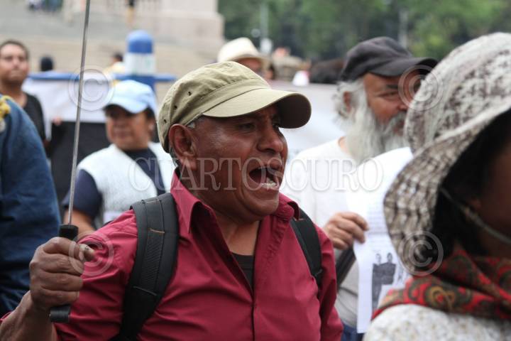 MÉXICO, D.F., 18SEPTIEMBRE2014.- Pobladores de San Salvador Atenco marcharon del Ángel de la Independencia al Tribunal Agrario en protesta por la construcción del nuevo Aeropuerto en Texcoco, en el cual terminaron con un mitin. FOTO: ADOLFO VLADIMIR /CUARTOSCURO.COM