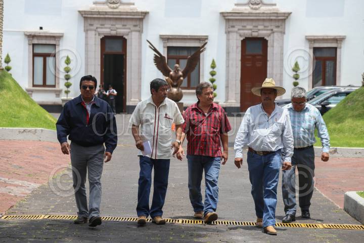 MÉXICO, D.F., 15MAYO2015.- Rubén Nuñez, dirigente de la sección 22 de la CNTE en Oaxaca, Juan José Ortega Madrigal, Dirigente de la sección 18 del magisterio en Michoacan, Adelfo Alejandro Gómez dirigente de la sección 7 del SNTE en Chiapas, y ramos Reyes, dirigente del CNTE en Guerrero, a su salida de la reunión con con Luis Enrique Miranda, Sub-Secretario de Gobierno de la SEGOB. FOTO: SAÚL LÓPEZ /CUARTOSCURO.COM