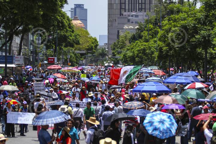 CIUDAD DE MÉXICO, 05JULIO2016.- Integrantes de la Coordinadora Nacional de Trabajadores de la Educación y padres de familia, marcharon sobre la Av Reforma con dirección al Zócalo de la ciudad como protesta a los actos violentos sucitados en Oaxaca y en contra de la Reforma Educativa. FOTO: KARLO REYES /CUARTOSCURO.COM