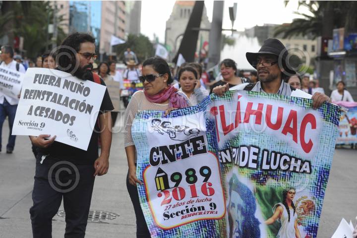 CIUDAD DE MÉXICO, 13OCTUBRE2016.- Maestros de la Coordinadora Nacional de Trabajadores de la Educación (CNTE) realizaron una marcha rumbo a la SEP en protesta contra el despido y la suspensión de 28 profesores en la sección 9 de la CNTE. FOTO: ARMANDO MONROY /CUARTOSCURO.COM
