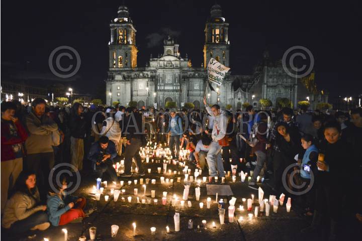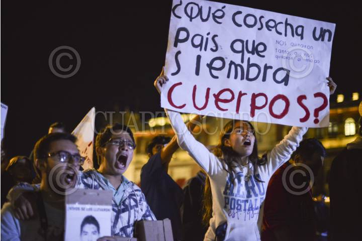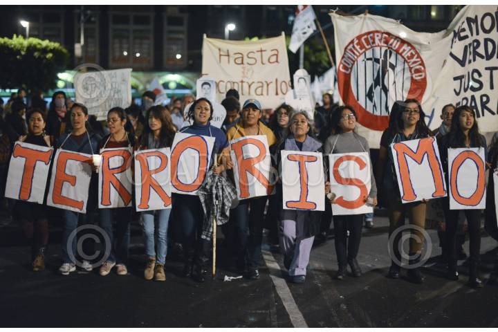 MÉXICO, D.F., 22OCTUBRE2014.- Como parte del día de acción global por Ayotzinapa, miles de estudiantes realizaron una marcha del Ángel de la Independencia al Zócalo capitalino, con la exigencia de la aparición con vida de los 43 estudiantes normalistas desaparecidos el pasado 26 de septiembre en Iguala, Guerrero. La marcha, encabezada por las madres y familiares de los jóvenes desaparecidos, terminó con un mitin en el cual culparon al Estado mexicano del ataque y la criminalización de los jóvenes estudiantes en México. FOTO: ADOLFO VLADIMIR /CUARTOSCURO.COM