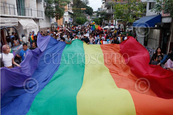CHILPANCINGO, GUERRERO, 14JUNIO2024.- Se llevó a cabo la edición número 23 de la marcha de la diversidad sexual en Chilpancingo, en dónde cientos de representantes de la comunidad LGBTI+ se dieron cita para marchar y exigir por sus derechos. Alrededor de las seis de la tarde el contingente partio del Congreso del Congreso del Estado de Guerrero, con dirección al zócalo capitalino, en dónde realizaron un mitin. Exigieron que sus derechos politico-electorales sean respetados a través de las acciones afirmativas y sean prioridad en la asignación de candidaturas y cargos de elección popular, para que sean partícipes de directos en la toma de decisiones en el ámbito municipal y legislativo. FOTO: DASSAEV TÉLLEZ ADAME/CUARTOSCURO.COM