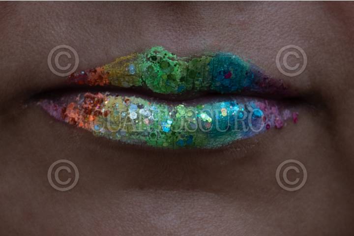 CIUDAD DE MÉXICO, 22JUNIO2024.- Una mujer pinta la cara de una joven con los colores de la bandera lésbica durante la Marcha Lencha que se realizó desde el Ángel de la Independencia hasta el Monumento a la Revolución. FOTO: ALICE MORITZ/CUARTOSCURO.COM