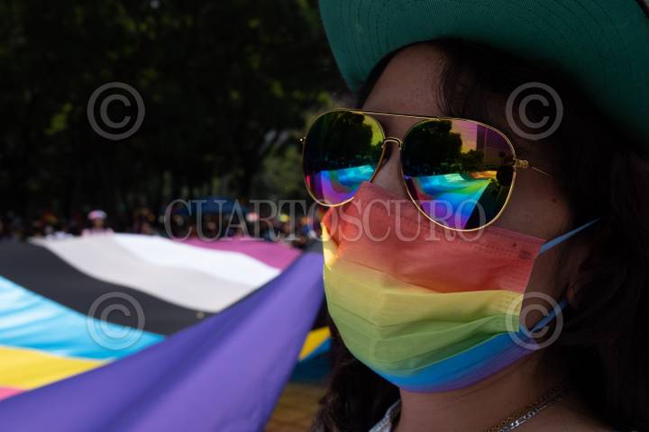CIUDAD DE MÉXICO, 22JUNIO2024.- Varias personas acudieron a la Marcha Lencha 2024 que se realizó desde el Ángel de la Independencia hasta el Monumento a la Revolución. FOTO: ALICE MORITZ/CUARTOSCURO.COM