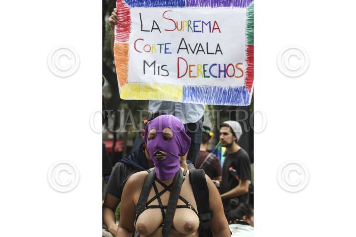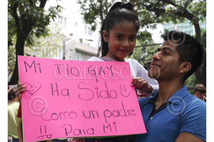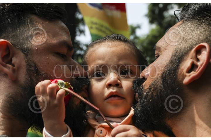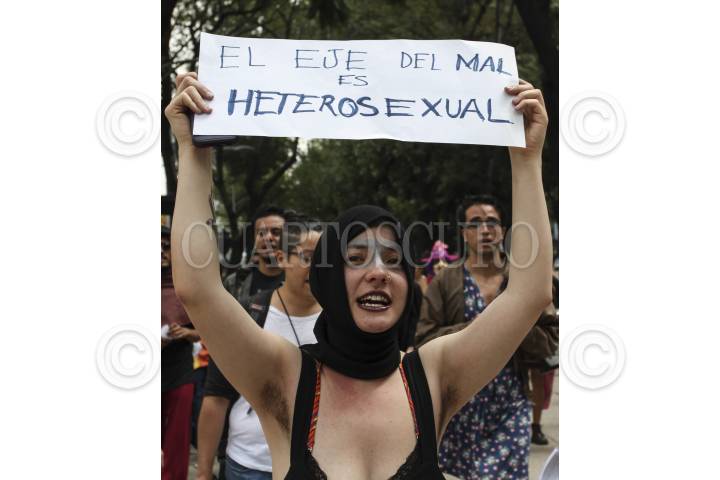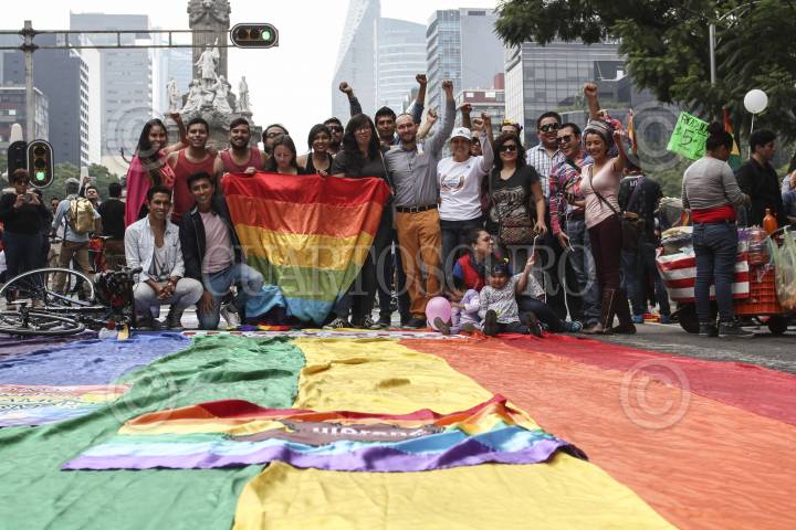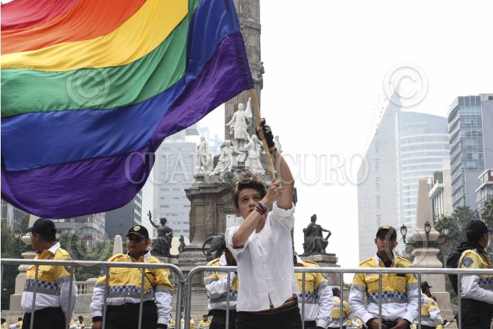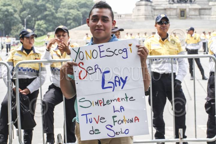 CIUDAD DE MÉXICO, 24SEPTIEMBRE2016.- Centenas de personas integrantes o partidarias de la comunidad LGBTTTI se reunieron frente al Ángel de la Independencia para manifestar su descontento hacia la marcha alterna que realizaron integrantes del Frente Nacional por la Familia, quienes se muestran en contra del matrimonio igualitario y la adopción entre parejas del mismo sexo. Ambos frentes fueron cercados por granaderos, para impedir una confrontación directa. FOTO: MARÍA JOSÉ MARTÍNEZ /CUARTOSCURO.COM