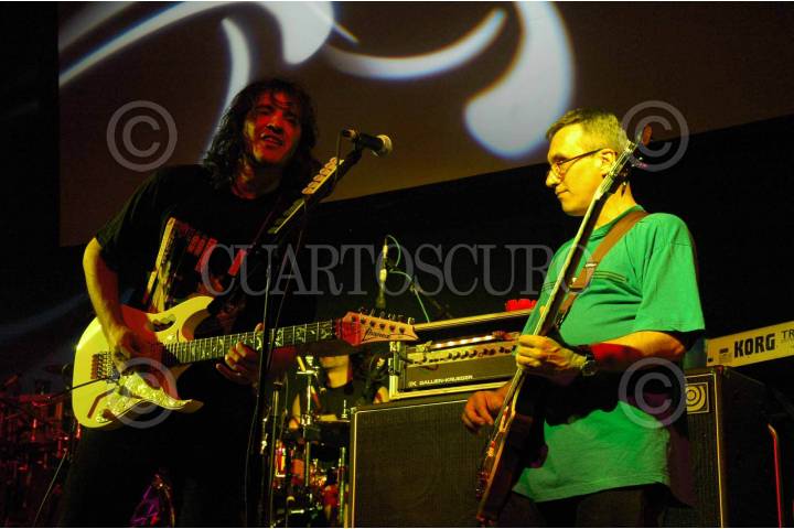 VERACRUZ,VERACRUZ.-25NOVIEMBRE2005.- Felipe Stati en la guitarra y Marciano Cantero, voz, integrantes del grupo de rock argentino "Enanitos Verdes", durante una presentación en conocido antro del puerto de Veracruz la noche de ayer. FOTO: Isaac Aguilar/CUARTOSCURO.COM